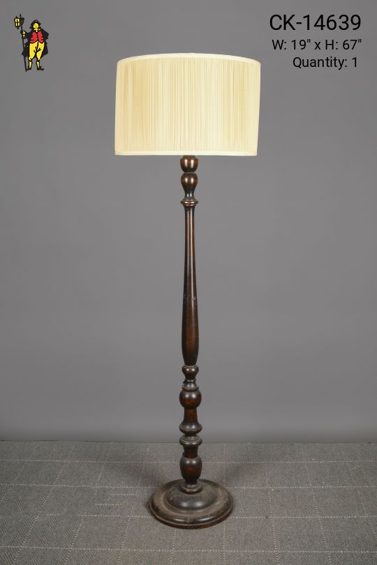 Wooden Floor Lamp w/Pleated Drum Shade