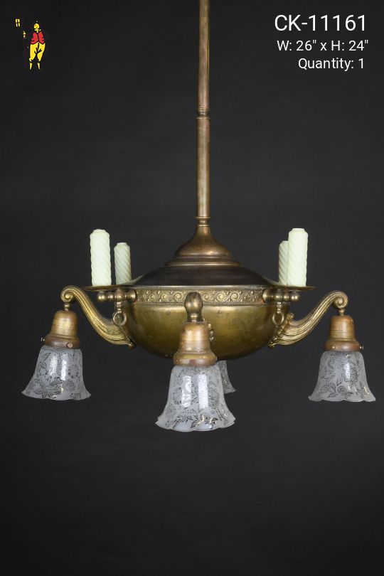 Pre War Four Light Chandelier w/Glass Candles