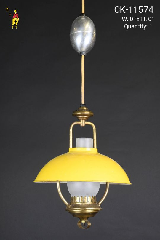 Yellow Shaded Mid Century Pull Down Hanging Fixture