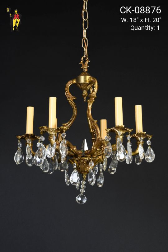 Brass & Crystal Six Light Chandelier