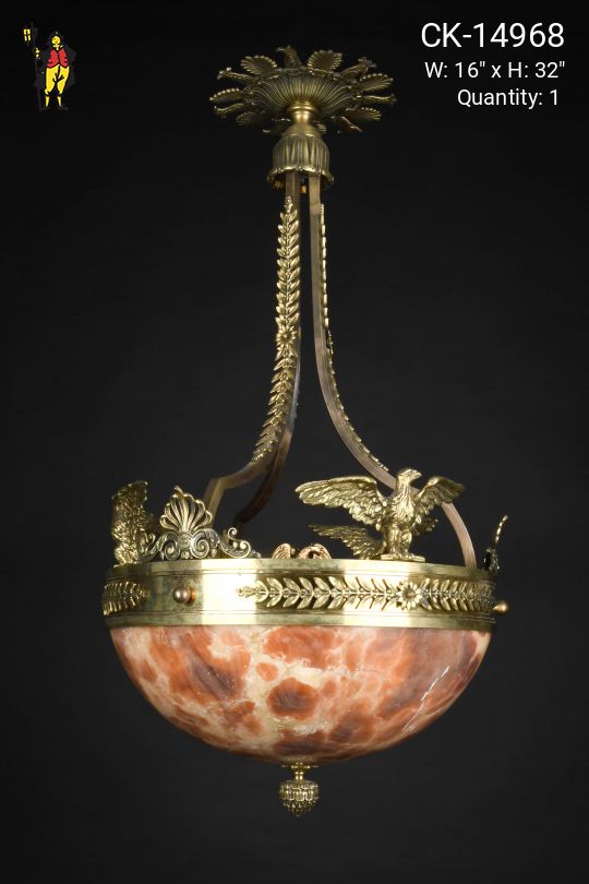 Polished Brass & Alabaster Hanging Bowl Chandelier
