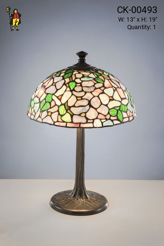 Antique Bronze Table Lamp w/Leaded Glass Shade