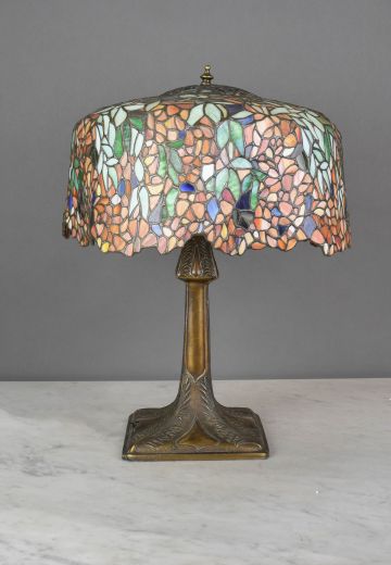 Bronze & Black Urn Table Lamp w/Amber Mica Shade