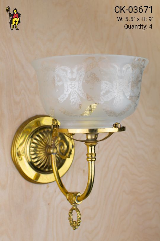 Brass Curved Arm Wall Sconce w/Etched Glass Bowl Shade
